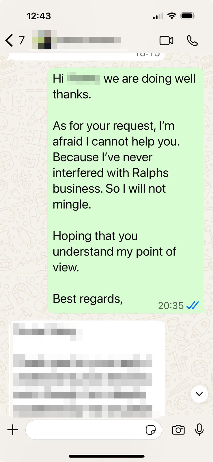 This situation has, unfortunately, gone beyond business. There has been direct contact with my family without their consent, which has been upsetting for them. While I won’t go into personal details, I believe it’s important to keep such matters professional and respect everyone’s boundaries. View Screenshot.